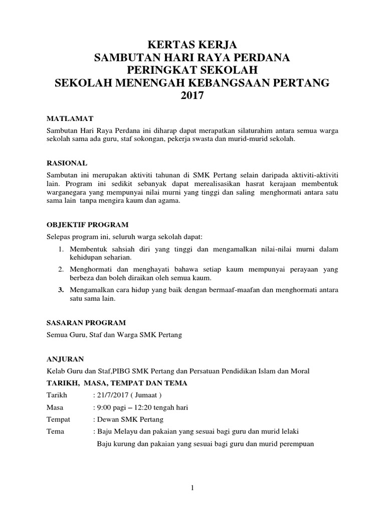 Contoh Kertas Kerja Jamuan Hari Raya Pdf